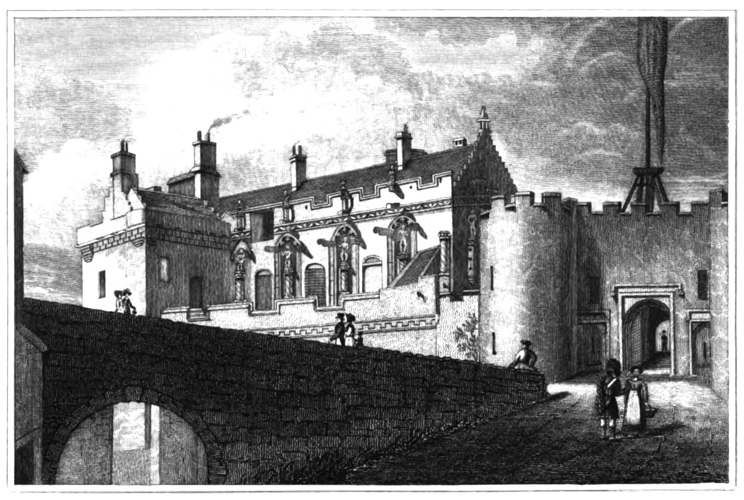The visiter first passes under two archways, which give access through two several walls of defence, the external fortifications of the castle. These were erected at the expence of Queen Anne, who at the same time caused a deep fosse to be dug in front of each. The outer fosse is passed by a draw bridge. We learn from Slezer’s view of the castle, taken in the reign of King William, that the external fortifications of the castle formerly consisted of two large block-houses, or double towers, like the north-west angle of Holyroodhouse, or the western part of Falkland Palace. These are taken away, except the {14}lower part of one, through which a double-doored gate-way yet gives access to the interior court-yard. That the strength of the castle was improved by the demolition of these block-houses, and the erection of the two exterior walls, cannot reasonably be doubted; but the writer of the additions to Slezer’s descriptions in the second edition of the Theatrum Scotiæ, 1718, informs us that the Jacobites believed Queen Anne to have secretly entertained a design of weakening the castle by these operations, in order that it might the more easily become a prey to her brother when he should make his expedition into Britain for the recovery of his crown.