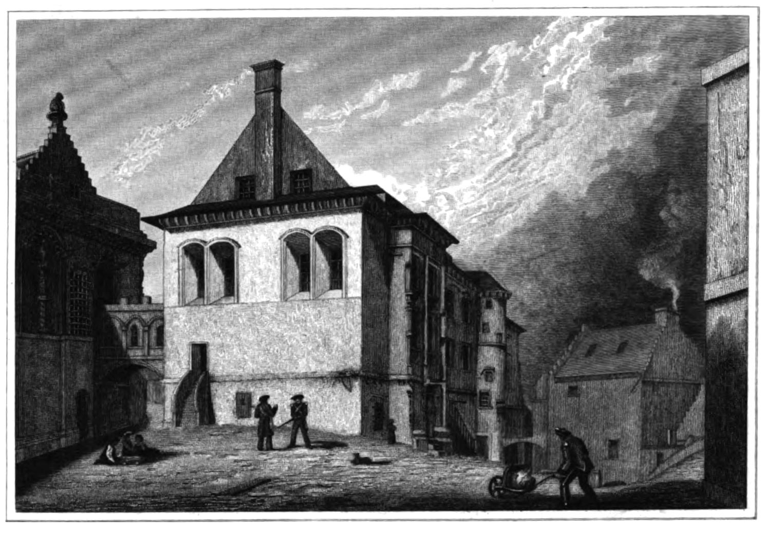 At the time when Stirling was an abode of the court, Broad Street appears to have been chiefly occupied by noblemen. The situations of the houses occupied by the Earls of Morton, Glencairn, Lennox, and other bold figurants in the history of Mary and James, are all here pointed out; as also, a house at the bottom, now the office of a branch of the Bank of Scotland, which is said to have been the residence, successively, of Darnley, and of the young Prince Henry, his grandson, when at nurse. On the site of the present weigh-house, was the house of the family of Lennox.