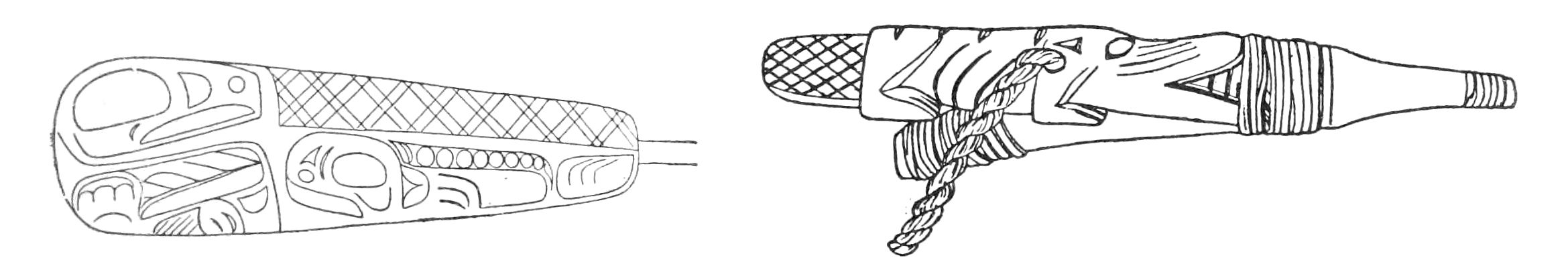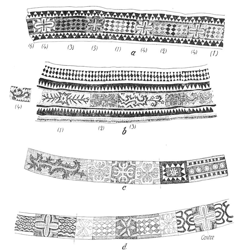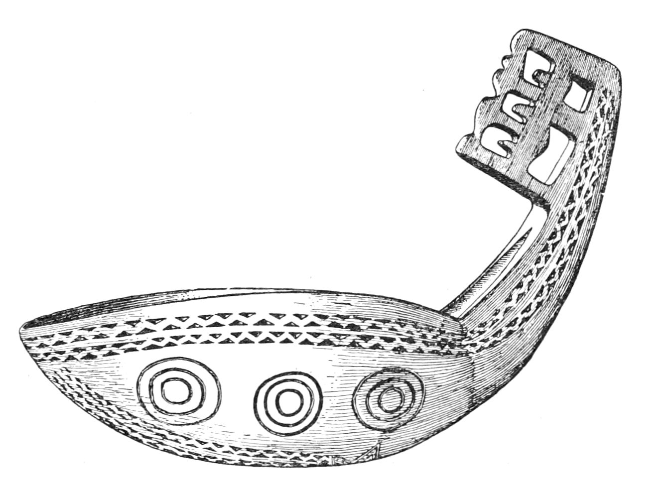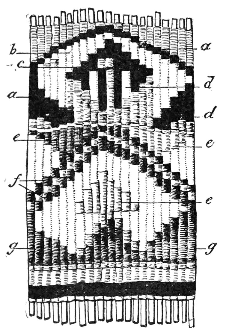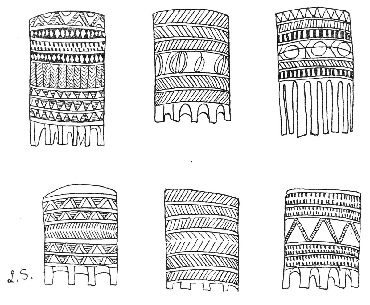 Alfred C. Haddon[12] and W. H. Holmes[13] seek the origin of all decorative art in realism. They discuss the transfer of technical forms to ornament but they see in these also results of the endeavor to reproduce realistic form, namely; technical details. Henry Balfour[14] agrees, on the whole, with this position but he stresses also the development of decorative motives from the actual use of technical processes.