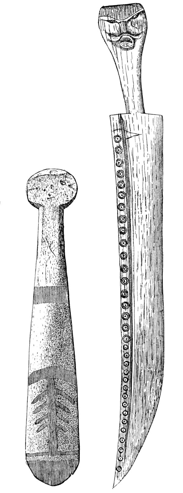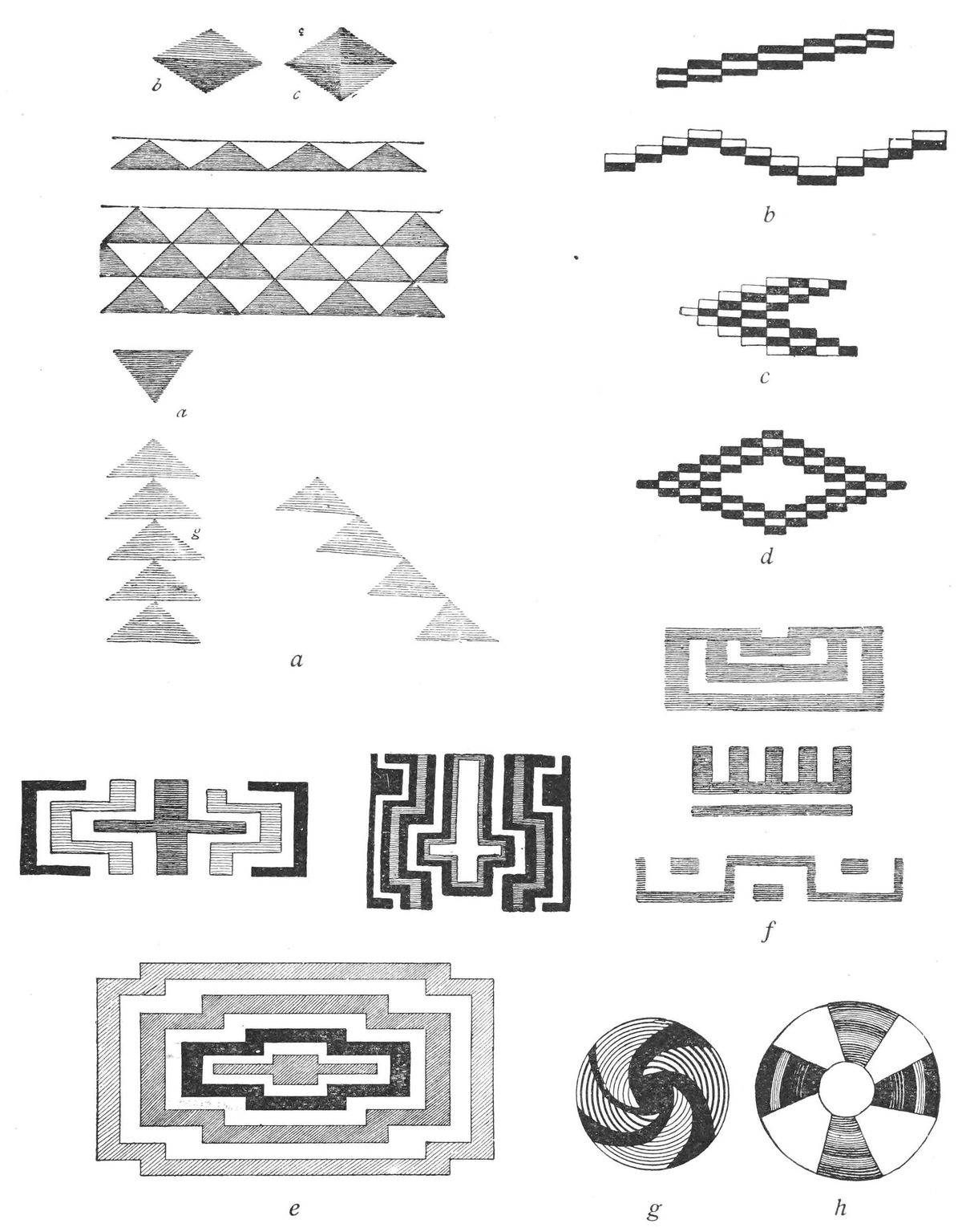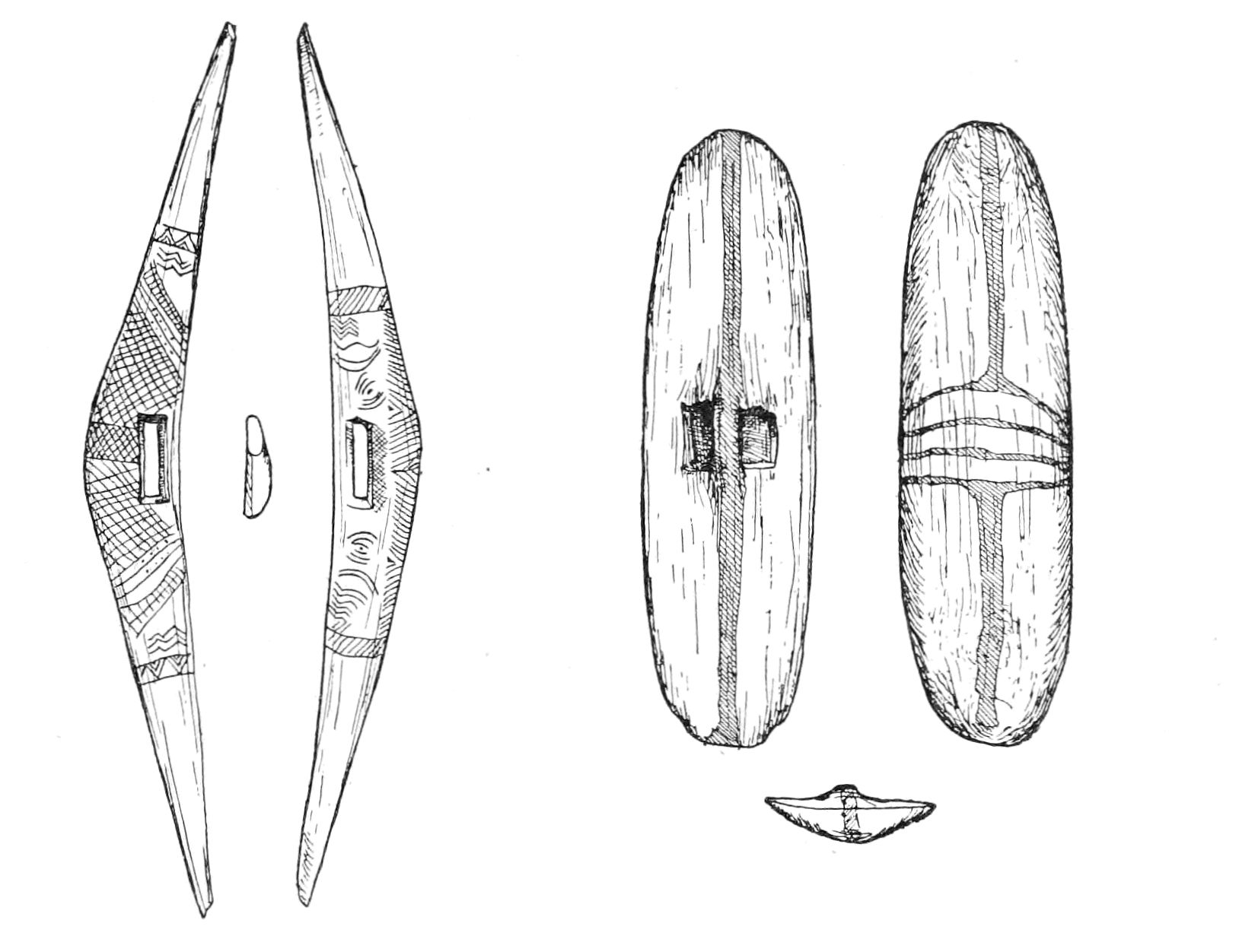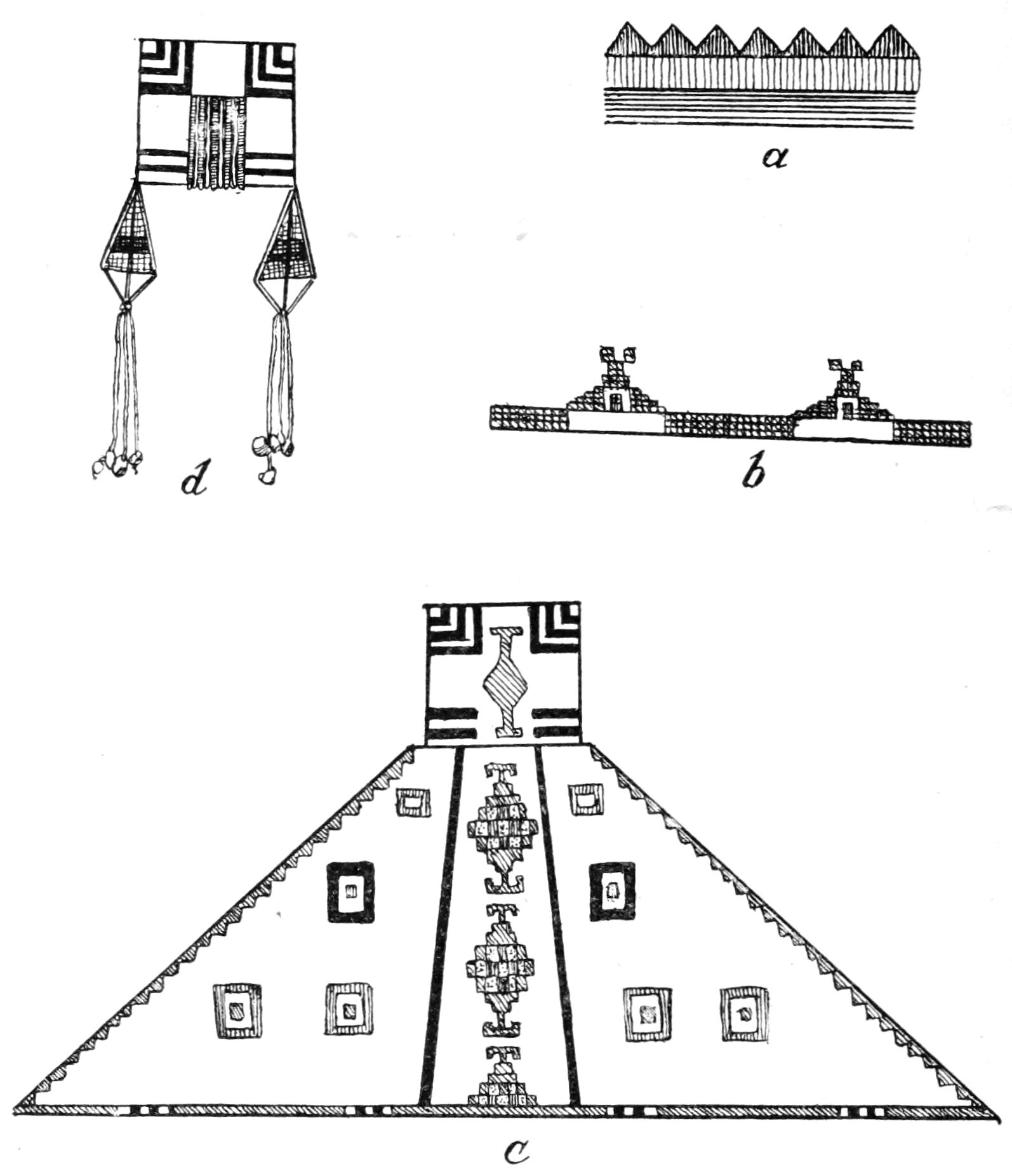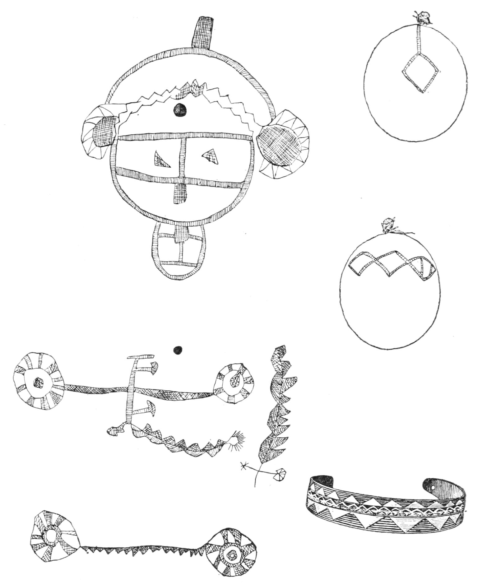 Alfred C. Haddon[12] and W. H. Holmes[13] seek the origin of all decorative art in realism. They discuss the transfer of technical forms to ornament but they see in these also results of the endeavor to reproduce realistic form, namely; technical details. Henry Balfour[14] agrees, on the whole, with this position but he stresses also the development of decorative motives from the actual use of technical processes.