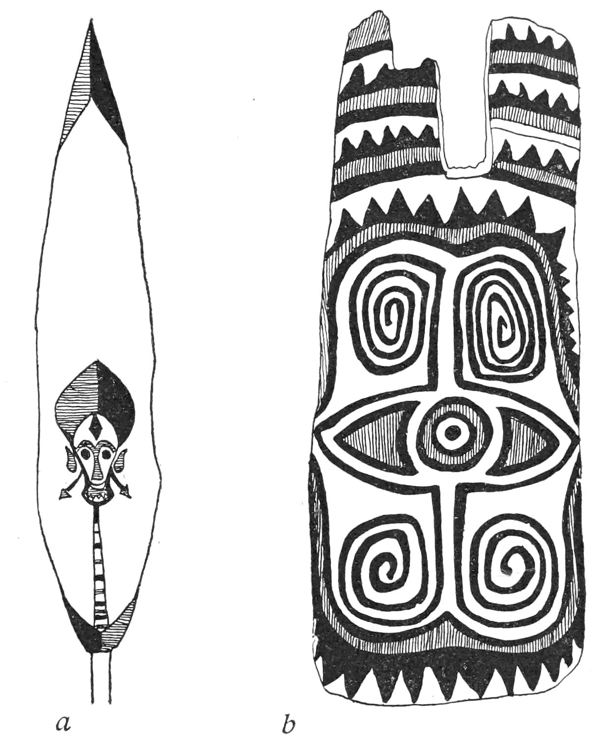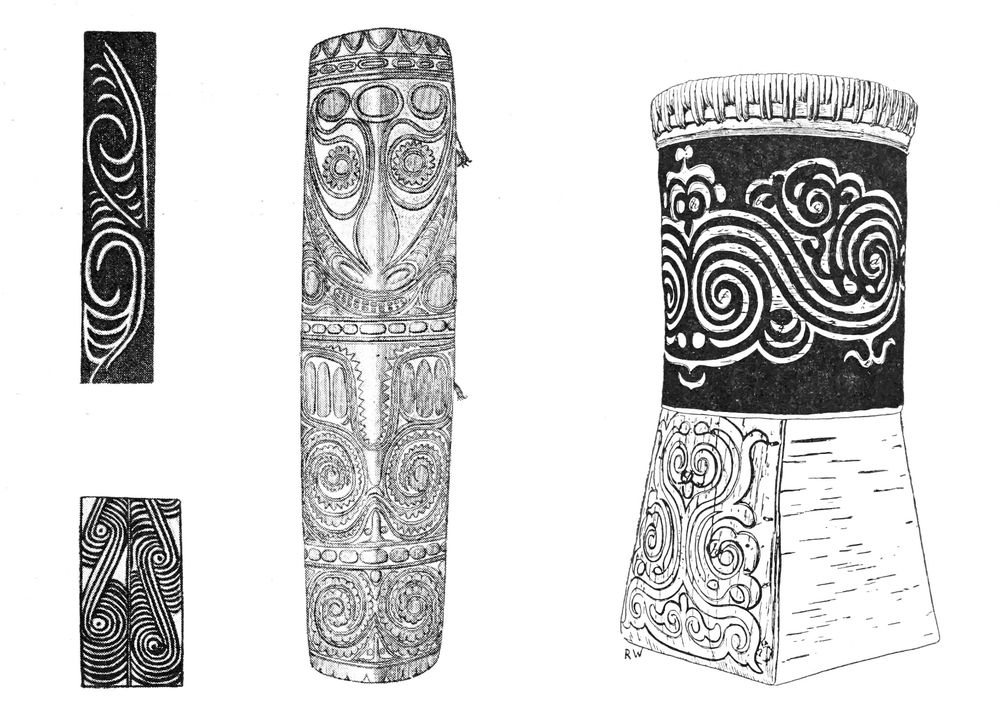 Emil Stephan[11] concludes from his detailed discussion of Melanesian art that technical motives offer no sufficient explanation for the origin of artistic forms (pp. 52 et seq.). He considers all ornament as representative and sees the origin of art in that unconscious mental process by which the form appears as distinct from the content of the visual impression, and in the desire to give permanence to the form (p. 51). For this reason he considers the artistic forms also as equivalents of the way in which the form appears to the primitive artist.