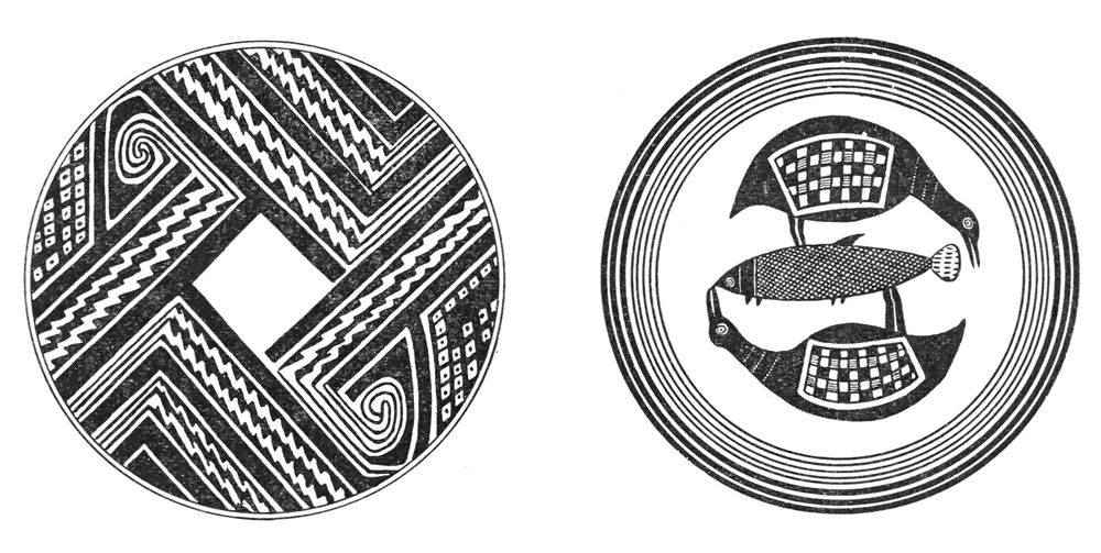 Ernst Grosse[10] expresses similar views in somewhat different form. [15]He stresses the practical purpose of artistic forms which appears to him as primary. However, he assumes that these forms, while devoted first of all to practical purposes, are intended at the same time to serve an esthetic need that is felt by the people. Thus, he says, that primitive ornament is by origin and by its fundamental nature not intended as decorative but as a practically significant mark or symbol, that is to say as expressive. If I understand him correctly this practical significance implies some kind of meaning inherent in the form.