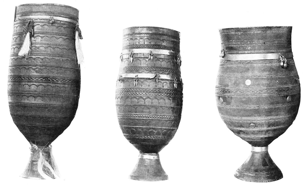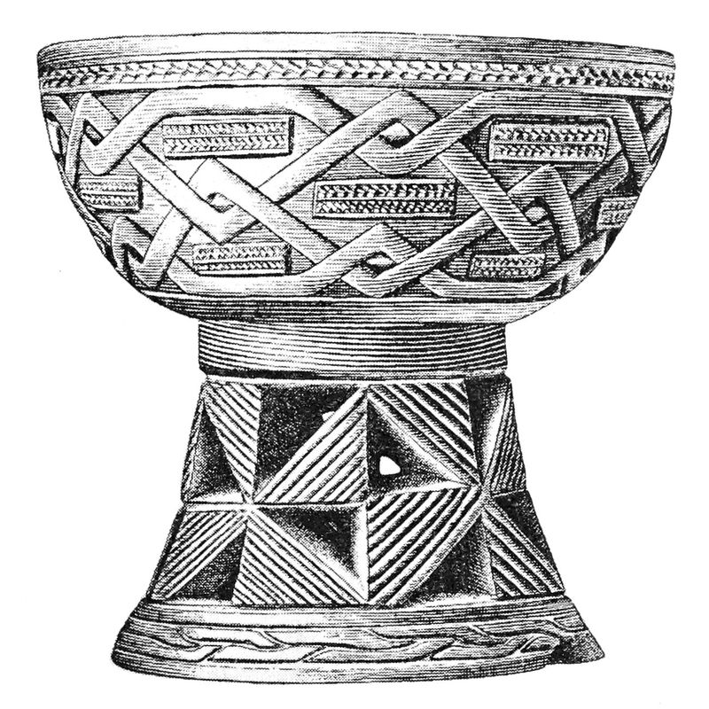It might be said that achievement is irrelevant as long as the ideal of beauty for which the would-be artist strives is in existence, although on account of imperfect technique he may be unable to attain it. Alois Riegl expresses this idea by saying that the will to produce an esthetic result is the essence of artistic work. The truth of this assertion may be admitted and undoubtedly many individuals strive for expression of an esthetic impulse without being able to realize it. What they are striving for presupposes the existence of an ideal form which the unskilled muscles are unable to express adequately. The intuitive feeling for form must be present. So far as our knowledge of the works of art of primitive people extends the feeling for form is inextricably bound up with technical experience. Nature does not seem to present formal ideals,—that is fixed types that are imitated,—except when a natural object is used in daily life; when it is handled, perhaps modified, by technical processes. It would seem that only in this way form impresses itself upon the human mind. The very fact that the manufactures of man in each and every part of the world have pronounced style proves that a feeling for form develops with technical activities. There is nothing to show that the mere contemplation of nature or of natural objects develops a sense of fixed form. Neither have we any proof that a definite stylistic form develops as a product purely of the power of the imagination of the workman, unguided by his technical experience which brings the form into his consciousness. It is conceivable that elementary esthetic forms like symmetry and rhythm, are not entirely dependent upon technical activities; but these are common to all art styles; they are not specifically characteristic of any particular region. Without stability of form of objects, manufactured or in common use, there is no style; and stability of form depends upon the development of a high technique, or in a few cases on the constant use of the same kind of natural products. [12]When stable forms have been attained, imaginative development of form in an imperfect technique may set in and in this case the will to produce an esthetic result may outrun the ability of the would-be artist. The same consideration holds good in regard to the esthetic value of muscular movements used in song and dance.