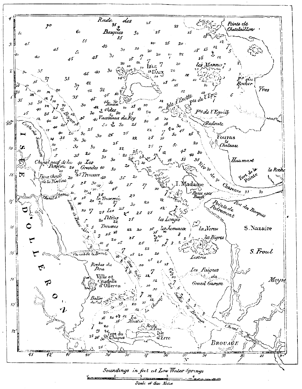 viiiFrench Hydrographic Charts.—One tendered by me to the Court.—Rejected by the President.—Grounds for its rejection.—The object of the rejected Chart.—Would have proved too much, if admitted.—Rejection of other Charts tendered by me.—Mr. Stokes’s Chart.—Its Fallacy at first sight.—Judge Advocate’s Reasons for Adopting it.—Its Errors detected by the President, and exposed here.—Probable Excuse for the Error.—Imaginary Shoal on the Chart.—Falsification of Width of Channel.—Lord Gambier’s Voucher for Stokes’s Chart.—Stokes’s Voucher for its Worthlessness.—Stokes’s Chart in a National point of View.—Taken Advantage of by the French 15