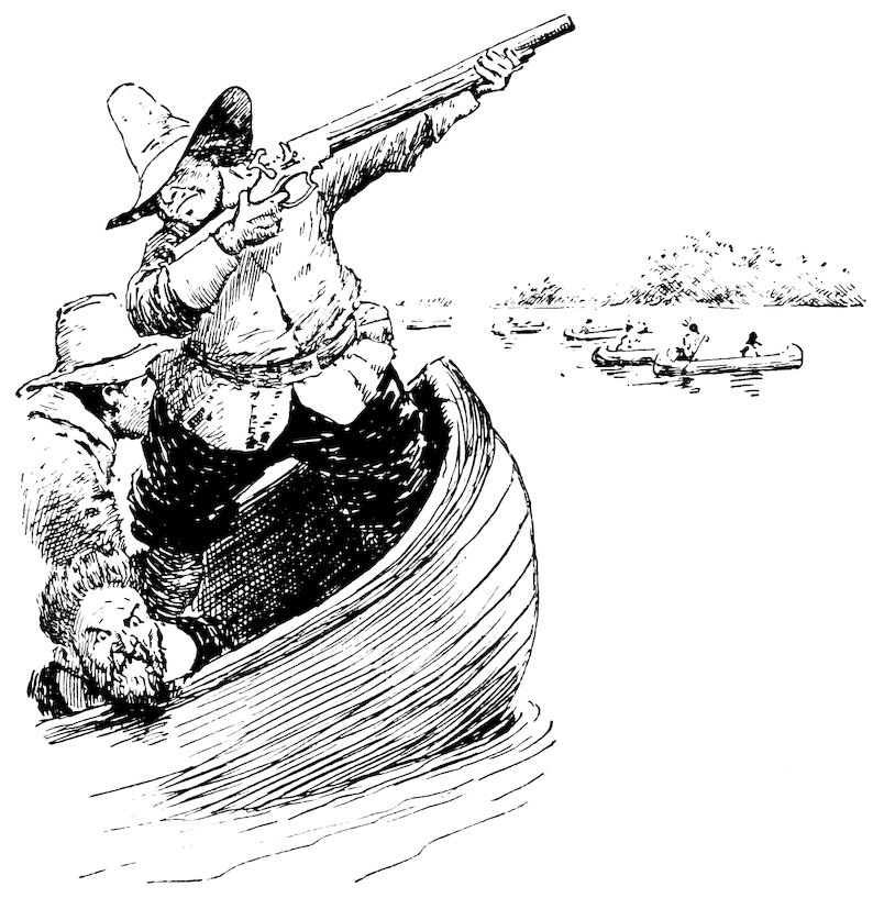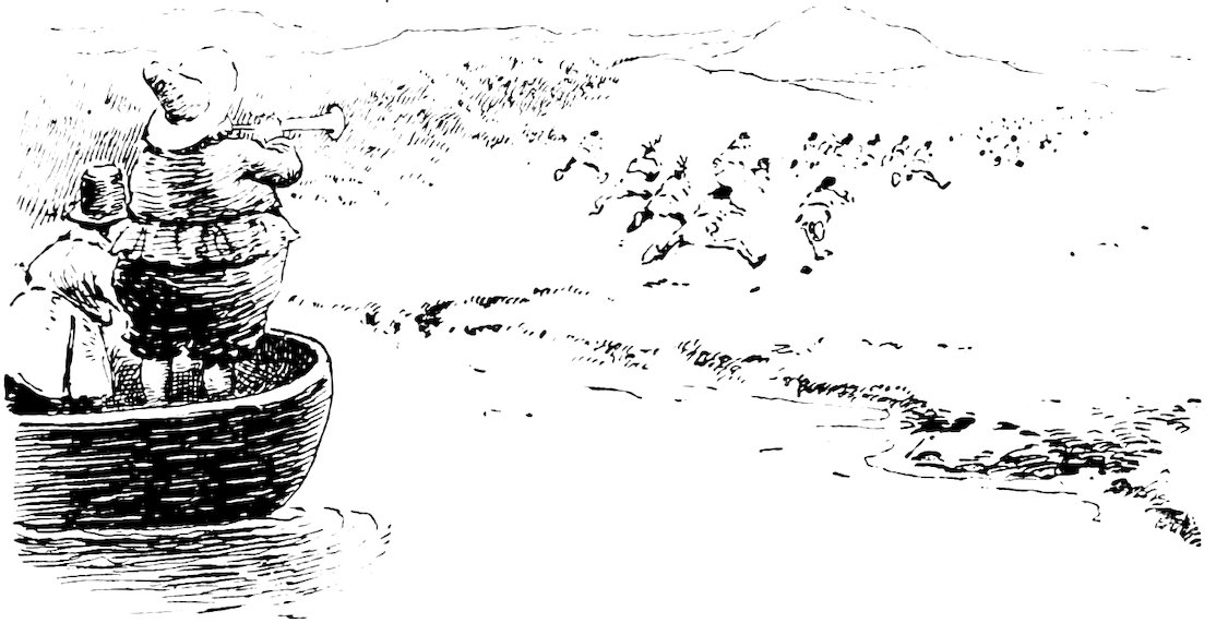 Here he was encountered by a host of Yankee warriors, headed by Preserved Fish, and Habakkuk Nutter, and Return Strong, and Zerubabbel Fisk, and Determined Cock! 362at the sound of whose names Stoffel Brinkerhoff verily believed the whole parliament of Praise-God Barebones had been let loose upon him. He soon found, however, that they were merely the “selectmen” of the settlement, armed with no weapon but the tongue, and disposed only to meet him on the field of argument. Stoffel had but one mode of arguing, that was, with the cudgel; but he used it with such effect that he routed his antagonists, broke up the settlement, and would have driven the inhabitants into the sea if they had not managed to escape across the Sound to the mainland by the Devil’s stepping-stones, which remain to this day monuments of this great Dutch victory over the Yankees.