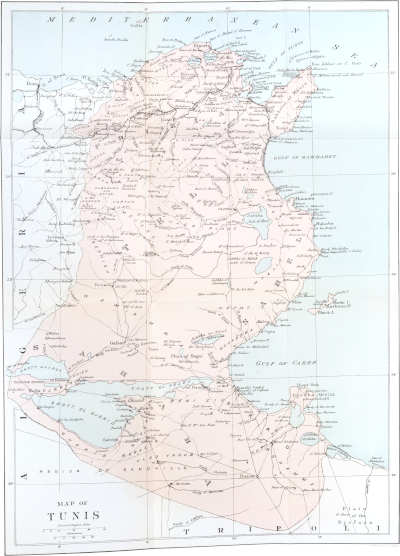The coast towns of the Regency are so intimately connected with the story of the last days of its independence that I need say little of them here. Tabarca, Bizerta, Porto-Farina, Galippia, Nebel, Hammamet, Susa, Monastir, Mehdia, Sfax, Mahrés, Gabes, Jerba, Zerzis, and the Tripolitan frontier will all be spoken of at length hereafter. The history of the central district of Tunis will be told with that of its capital—Kairwán.