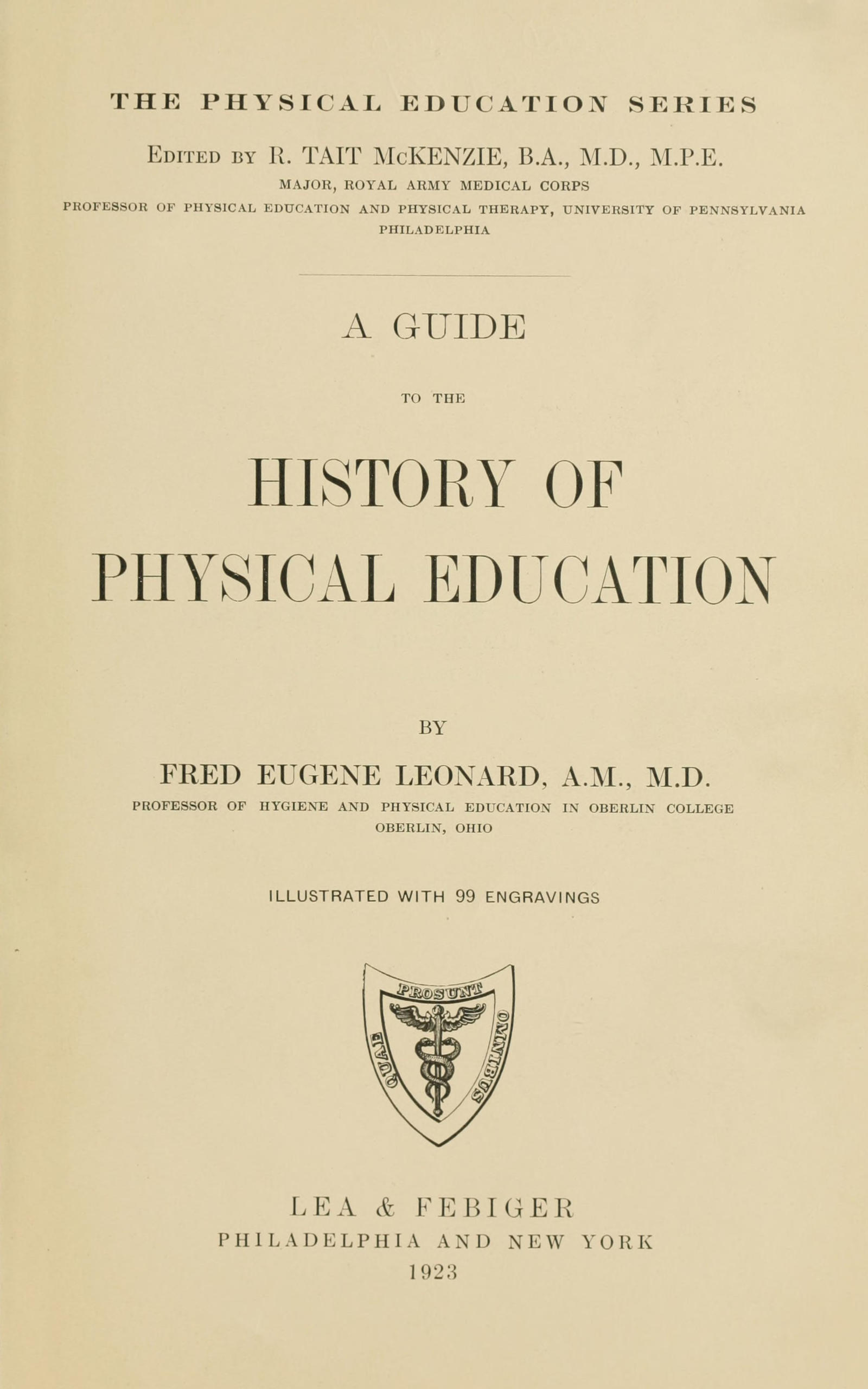 It comes appropriately early in a series of books designed to place physical education on an equality with other more strongly entrenched parts of a general educational system. The soul is indeed dead that does not react with a generous glow when reading the difficulties overcome and the work accomplished by the heroes of any field of endeavor, and what could be more inspiring at this time than to have set forth the conquests and defeats of those patriotic spirits whose lives have been given to upbuilding the health and fitness of the youth of the world, throughout the ages, as a guide and inspiration to us who have these same problems to meet at the present time.