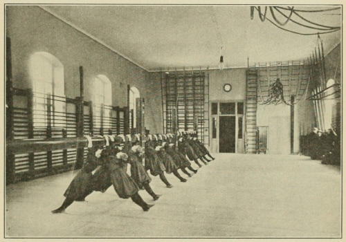On the twenty-fifth of the following June the Boston School Committee accepted her offer to furnish free training for one year, beginning in September, to “one hundred public-school teachers, who may be permitted to use the system in their school work, thus enabling your Honorable Board, and educators in general, to decide upon its merits by actual results produced upon the school children within the environment of the schoolroom.” At the same meeting the Board of Supervisors was authorized “to report in print upon the subject of physical training in the schools.” September 24 the committee accepted Mrs. Hemenway’s further offer to provide “a teacher of the Ling system of gymnastics for service in the Normal School for one year, free of expense to the city.” October 8 the Board of Supervisors reported, recommending “that the Ling system [325]of gymnastics be the authorized system of physical training in the public schools,” and at the same meeting a letter was read in which Mrs. Hemenway expressed her willingness “to provide instruction, free of expense to the City of Boston, for those masters and submasters who may desire to make a thorough study of the Ling system for the benefit of the Boston public schools.” The report was laid on the table, but the offer was accepted two weeks later. Baron Posse continued to give instruction to all these various classes up to January of 1890. Several small normal classes were also organized in 1889, which mark the beginning of the Boston Normal School of Gymnastics, established and afterwards endowed by Mrs. Hemenway, and with Baron Posse as its first director. In his annual report dated March 31, 1890, Superintendent Seaver writes that these demonstrations of Swedish educational gymnastics had already been attended by “30 masters, 24 submasters, and 166 other teachers. These have imparted their knowledge to yet other teachers, so that there are now 360 teachers prepared to use the ‘Ling system’ in their classes. In addition to these may be counted 97 recent graduates of the Normal School, who have all received instruction in this system.”