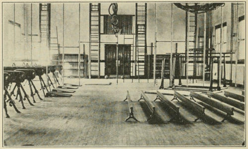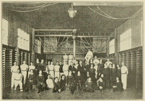 We have already mentioned Dr. Sargent’s contribution to the training of teachers (p. 284). During his forty years at Hemenway Gymnasium (1879-1919) his influence in this direction was more widely felt than that of any other man in America. The beginning was modest enough, at Witneys Block, corner of Palmer and Brattle Streets in Cambridge (1881-1883), where a single pupil, Mrs. Mary E. W. Jones, completed the one-year course in 1882. A second year was now added, and 4 women were graduated in 1884. Meanwhile quarters had been secured and equipped at 20 [353]Church Street, and here in the years 1883-1904 a total of 261 women finished the prescribed work in theory and practice. About 70 others remained for a single year only. In 1902 the course became a three-year one, with attendance at a summer camp in New Hampshire added in 1912. When the new “Sargent Gymnasium,” on Everett Street, was occupied, in the school year 1904-1905, men as well as women were received as students, and in the next five years 130 more women and 6 men were graduated. In the year 1918-1919 the total enrollment had reached 406, with 22 names on the list of “officers of instruction,” not counting student assistants and special camp instructors and assistants.