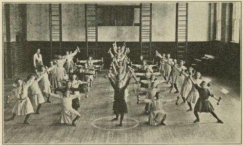 “In these thirty years playgrounds have been established in large and small cities and in rural communities throughout the country. A national organization, the Playground and Recreation Association of America, has been called into existence to act as a clearing house for information and, through the publishing of literature and educational work, to further the recreation movement. Buildings used wholly for recreational purposes have been erected. Reports made to the Playground and Recreation Association of America in December, 1916, show that 38 communities have recreation buildings, valued at $4,093,525. In rural communities has come a great awakening to the need of wholesome recreation to counteract immoral influences and to conserve for the community its young men and women who would otherwise go to large cities to find their opportunities. Both large and small cities have established systems, at the head of which have been placed workers employed throughout the year, corresponding to school superintendents in our educational system. Schools have introduced organized play in connection with their school playgrounds and specially trained play directors are employed, who spend their entire time directing the play of the pupils. Cities have come to see the economic waste of great buildings used a few hours each day for educational purposes and have thrown their schoolhouses open at night for the use of all the people for evening recreation-center activities, for dramatic clubs, orchestras, social dancing, gymnasium work, mothers’ clubs, civic forums, lectures, and motion pictures. In December, 1916, 127 cities reported that their school buildings were being used as neighborhood [348]recreation centers. Legislation making possible such a use of school buildings has been passed in a number of states. The creation of special recreation departments and playground and recreation commissions to administer playground work has been authorized by law in many states and cities. Increasingly has the emphasis been laid on the importance of considering recreation work as a governmental function and of administering it as one of the duties of a municipality to its citizens.
