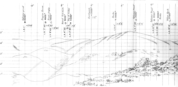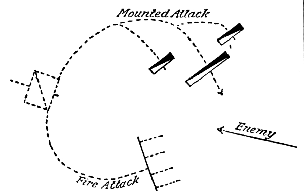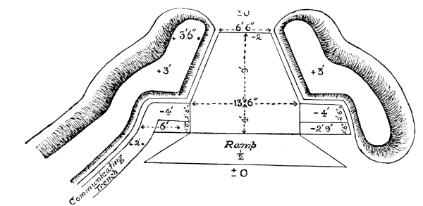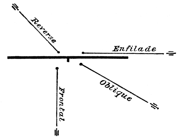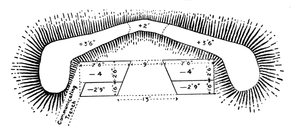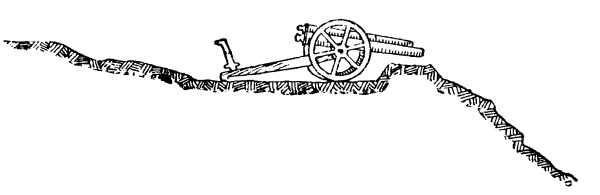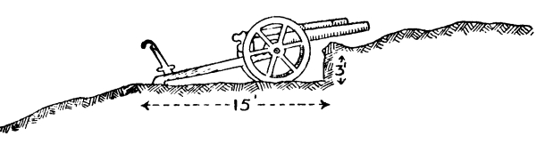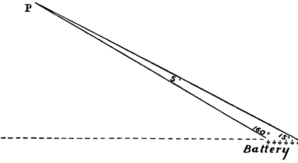 [10] Supposing that guns and target are on the same level, then to guns 60 yards in rear of a crest and 16 feet below it all ground is dead within 3,000 yards; if 9 feet below it all ground is dead within 2,000 yards; if 3 feet below it all ground is dead within 1,000 yards.