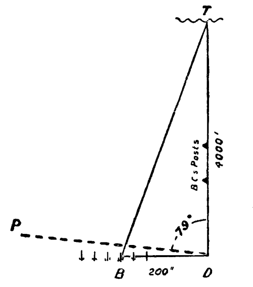 [35] As battery commander is not certain that the whole extent of the target is parallel to the front of the battery, he orders a longer interval in order that he may correct the range of individual guns if necessary.