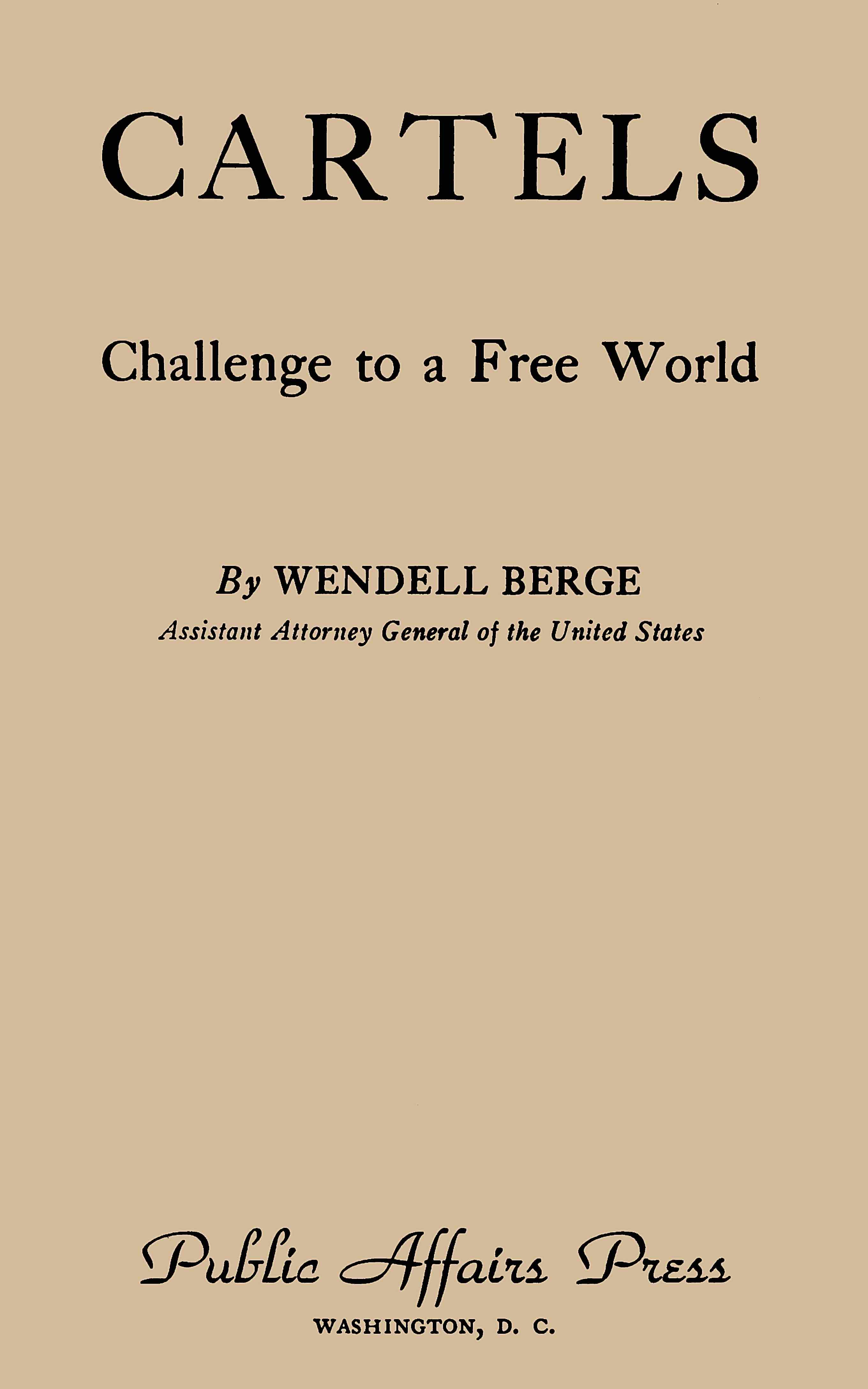 The pattern of cartel operations has been clearly revealed in recent years by antitrust investigations. From public records in antitrust proceedings and congressional hearings, information about cartel operations is now available. The public should be familiar with the facts. As head of the Antitrust Division of [Pg iv]the Department of Justice, I have frequently been called upon to discuss cartel problems before congressional committees, trade associations and civic groups. Since my testimony and speeches received varying degrees of public notice at the time they were given, the casual reader of newspaper reports necessarily obtained only an impressionistic picture of the far-flung ramifications of the subject. Something more is needed for thorough understanding.