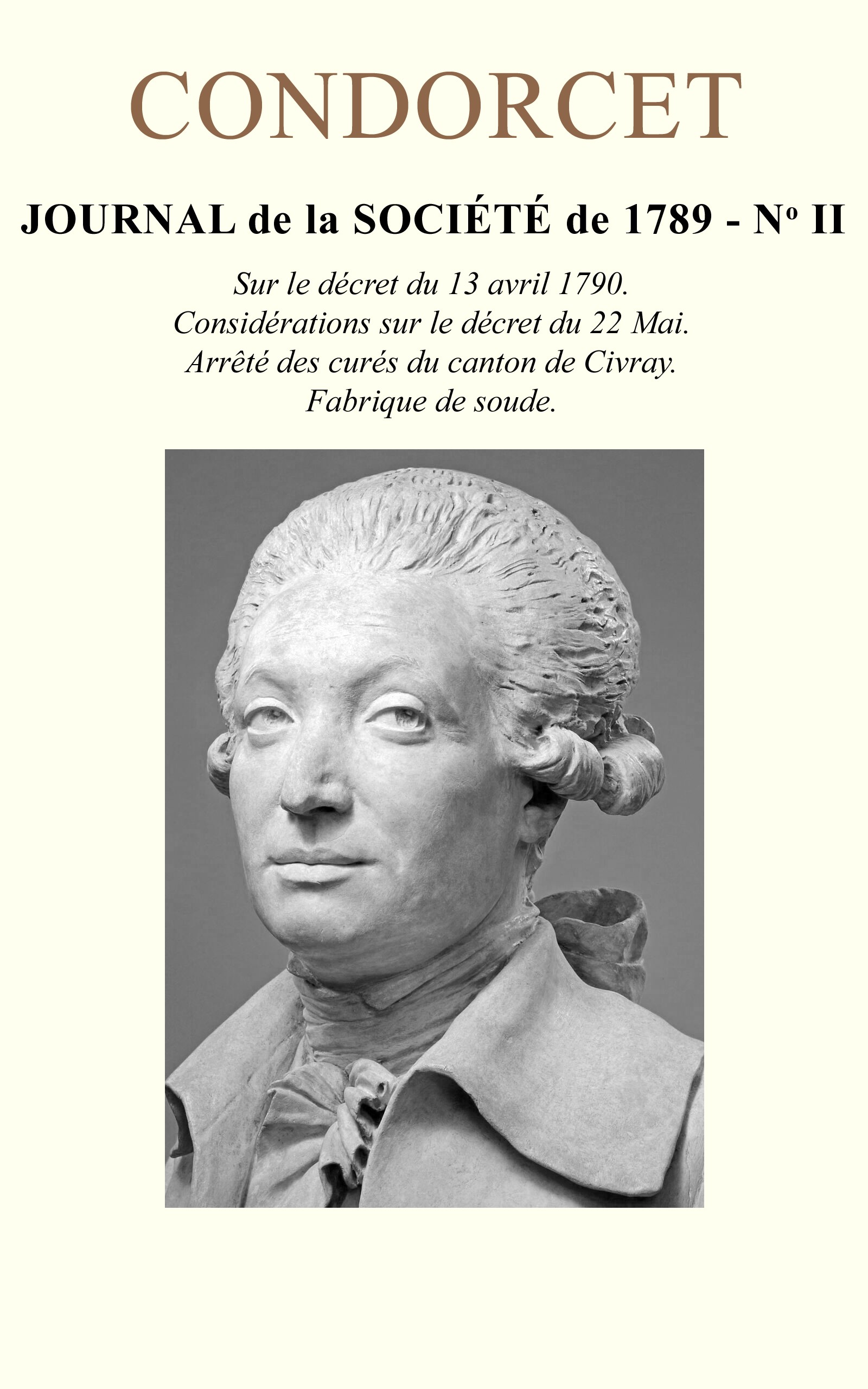 La couverture est illustrée par un buste du marquis Nicolas de Condorcet réalisé par Houdon (1741-1828).