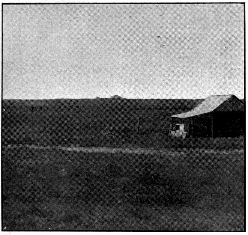 The sun’s rays became more and more scorching in their fierceness, the plains assumed a dull, leaden grayish aspect. The sagebrush and cactus took the place of the waving grass. The burning sand and stifling dust became deeper. These the west wind would raise into 366a cloud continuous from morning until night. This cloud of sand and dust particles beating against them at a terrific velocity they had to face all day. Soon eyes and lips were sore. To relieve the uncomfortable feeling that the parching air gave the lips they would unwisely be moistened and the soreness thus extended and deepened. Soon everything was obdurately begrimed. Rags then were in evidence. Shoes worn so as to no longer protect the feet. In the dry, scorching air the wagons would develop loose joints and lose their tires.