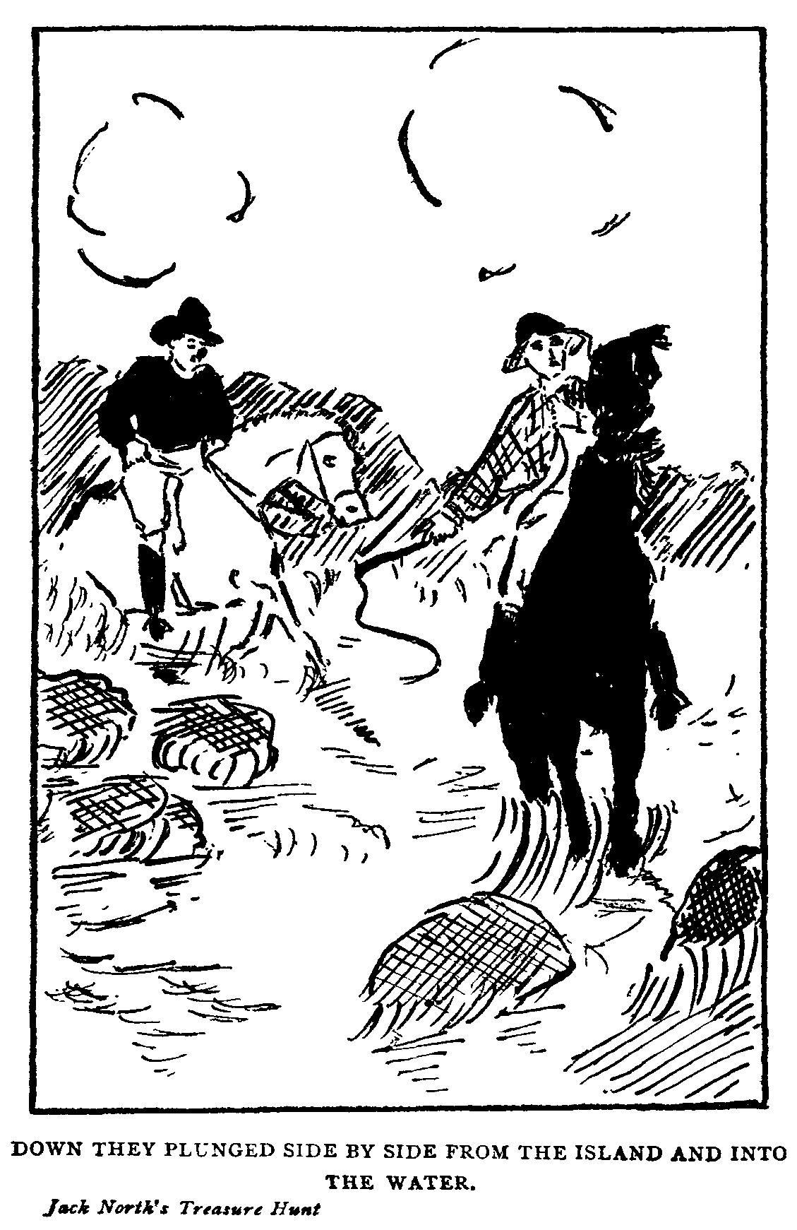 “Come, don’t stop here!” yelled Jack, urging his pony forward. “To higher ground, before it is too late!”