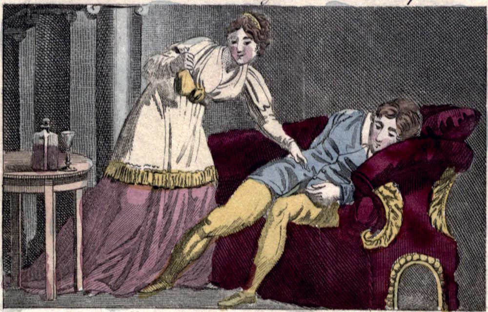 The princess Agrippina hastened to relate all that she had heard to the queen; who, pretending the greatest fondness for Andolocia, took him [Pg 16]into her closet, and presented him with a glass of the richest cordial, into which she had put a drug that soon threw him into a sound sleep; when, putting her hand into his pocket, she took his purse, and had him immediately conveyed to his own house fast asleep.