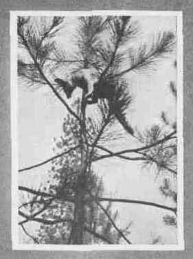 After a long time he desisted and, grunting and wheezing, came slowly up the canyon. With the night glasses we could see him. He seemed to be considerably heated with his exercise and scratched himself against a young fir tree. As he stood on his hind legs with his back to the trunk and rubbed himself to and fro, the tree swayed like a reed; and as he lifted his nose I observed that it just touched one of the lower branches. In the morning, after he had gone and we were on our way to camp, we passed this very fir and stretching up on my tip toes, I could just touch the limb with my fingers. Having been a pole vaulter in my youth, I knew by experience that this measurement was over seven feet six inches. He was a real he-bear! We wanted him more than ever.