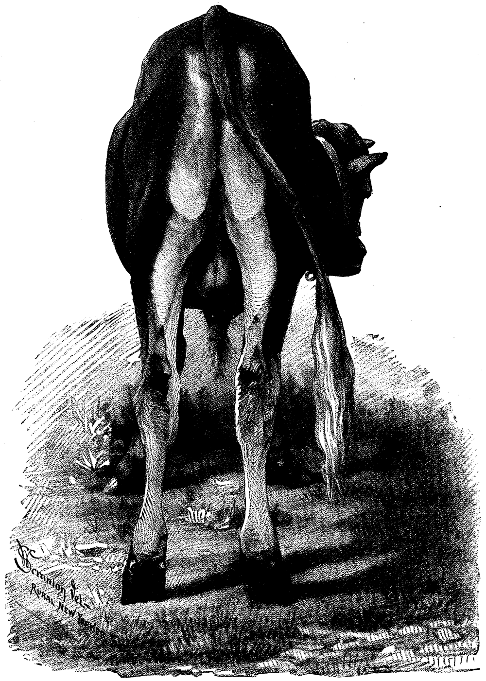 That portion of the escutcheon which covers the udder and extends out on the inside of each thigh, has been designated as the udder or mammary mirror; that which runs upward towards the setting on of the tail, the rising or placental mirror. The mammary mirror is of the greater value, yet the rising mirror is not to be disregarded. It is regarded of especial moment that the mirror, taken as a whole, be symmetrical, and especially that the mammary mirror be so; yet it often occurs that it is far otherwise, its outline being often very fantastical--exhibiting deep bays, so to speak, and islands of downward growing hair. There are also certain "ovals," never very large, yet distinct, which do not detract from the estimated value of an escutcheon; notably those occurring on the lobes of the udder just above the hind teats. These are supposed to be points of value, though for what reason it would be hard to tell, yet they do occur upon some of the very best milch cows, and those whose mirrors correspond most closely to their performances.