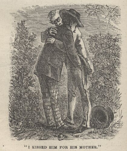 Here his feelings were too much for him, and he swooned away. I pitied this poor creature from the bottom of my heart. I was deeply moved. I shed a few tears on him and kissed him for his mother. I then took what small change he had and "shoved".
