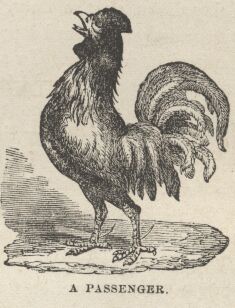 The little low-ceiled cabin below was rather larger than a hearse, and as dark as a vault. It had two coffins on each side—I mean two bunks. A small table, capable of accommodating three persons at dinner, stood against the forward bulkhead, and over it hung the dingiest whale oil lantern that ever peopled the obscurity of a dungeon with ghostly shapes. The floor room unoccupied was not extensive. One might swing a cat in it, perhaps, but not a long cat. The hold forward of the bulkhead had but little freight in it, and from morning till night a portly old rooster, with a voice like Baalam's ass, and the same disposition to use it, strutted up and down in that part of the vessel and crowed. He usually took dinner at six o'clock, and then, after an hour devoted to meditation, he mounted a barrel and crowed a good part of the night. He got hoarser all the time, but he scorned to allow any personal consideration to interfere with his duty, and kept up his labors in defiance of threatened diphtheria.