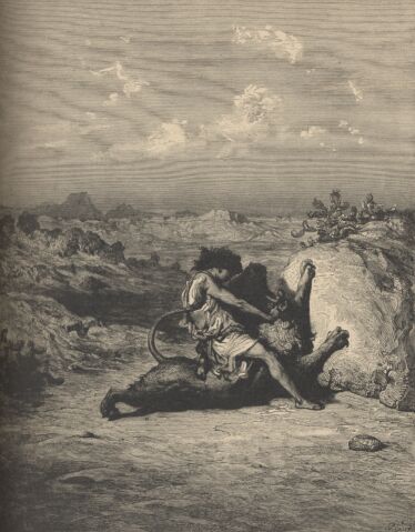 Then went Samson down, and his father and his mother, to Timnath, and came to the vineyards of Timnath; and, behold, a young lion roared against him. And the Spirit of the Lord came mightily upon him, and he rent him as he would have rent a kid, and he had nothing in his hand; but he told not his father or his mother what he had done. Judges xiv, 5-6.