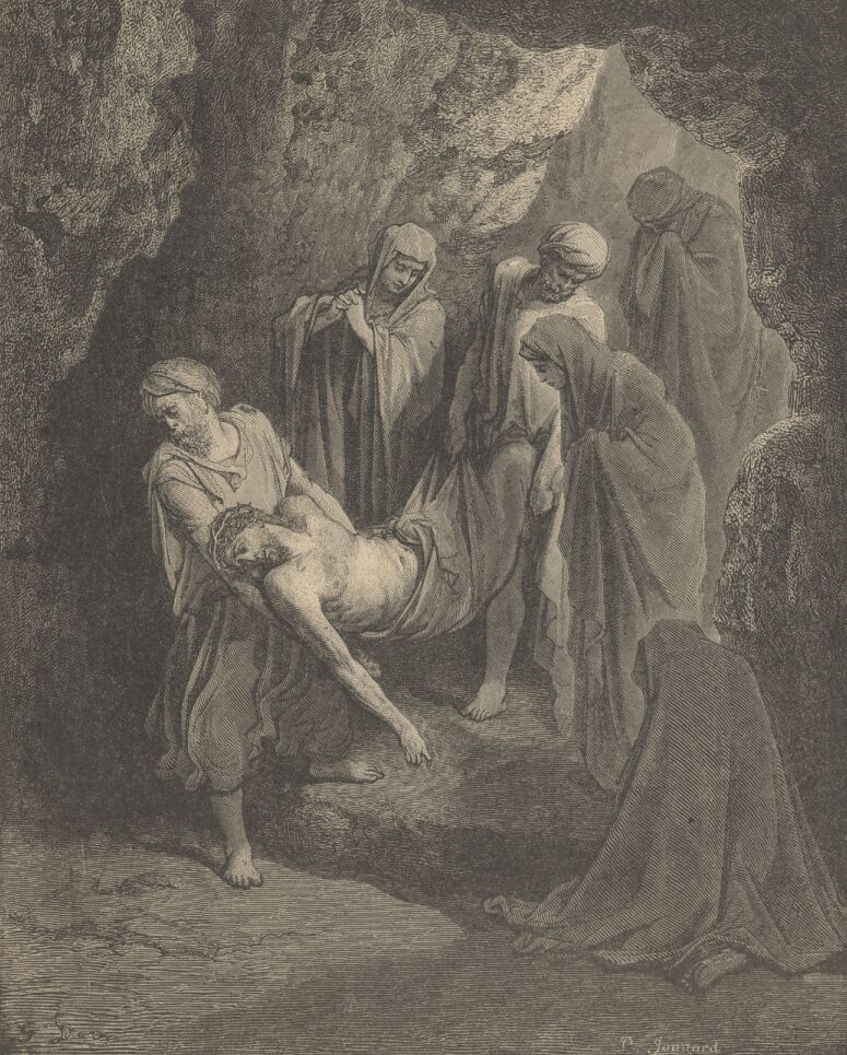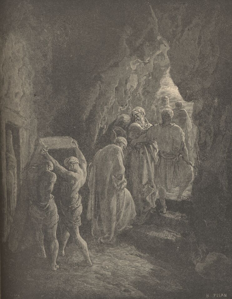 When the even was come, there came a rich man of Arimathea, named Joseph, who also himself was Jesus' disciple he went to Pilate, and begged the body of Jesus. Then Pilate commanded the body to be delivered. And when Joseph had taken the body, he wrapped it in a clean linen cloth, and laid it in his own new tomb, which he had hewn out in the rock: and he rolled a great stone to the door of the sepulchre, and departed.