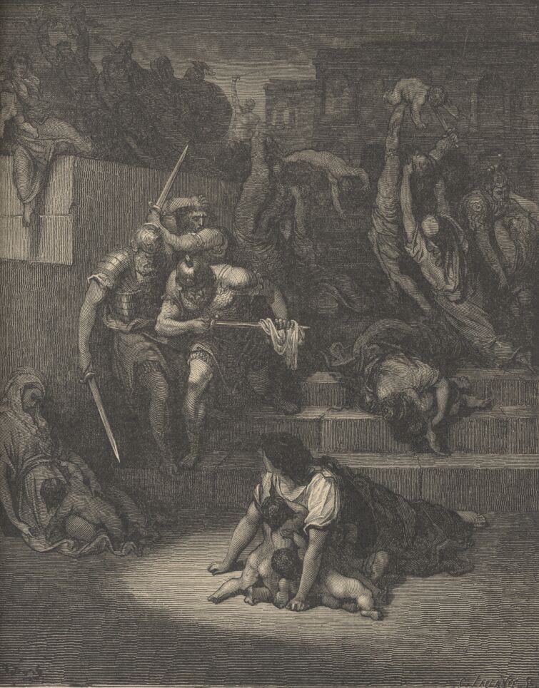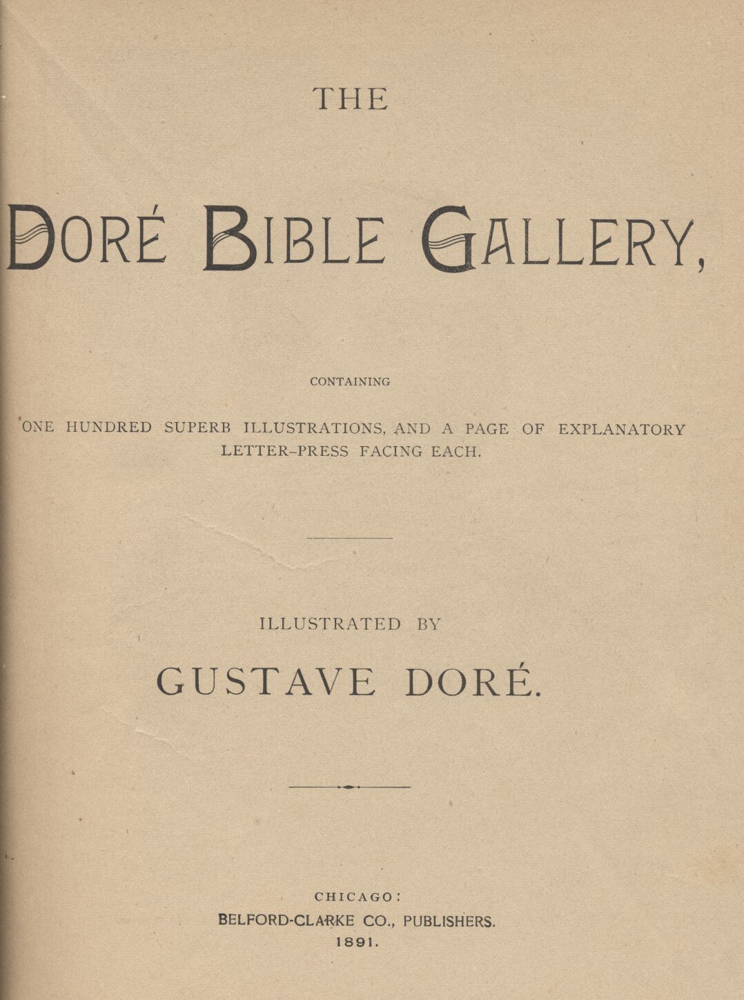 This volume, as its title indicates, is a collection of engravings illustrative of the Bible—the designs being all from the pencil of the greatest of modern delineators, Gustave Dore. The original work, from which this collection has been made, met with an immediate and warm recognition and acceptance among those whose means admitted of its purchase, and its popularity has in no wise diminished since its first publication, but has even extended to those who could only enjoy it casually, or in fragmentary parts. That work, however, in its entirety, was far too costly for the larger and ever-widening circle of M. Dore's admirers, and to meet the felt and often-expressed want of this class, and to provide a volume of choice and valuable designs upon sacred subjects for art-loving Biblical students generally, this work was projected and has been carried forward. The aim has been to introduce subjects of general interest—that is, those relating to the most prominent events and personages of Scripture—those most familiar to all readers; the plates being chosen with special reference to the known taste of the American people. To each cut is prefixed a page of letter-press—in, narrative form, and containing generally a brief analysis of the design. Aside from the labors of the editor and publishers, the work, while in progress, was under the pains-taking and careful scrutiny of artists and scholars not directly interested in the undertaking, but still having a generous solicitude for its success. It is hoped, therefore, that its general plan and execution will render it acceptable both to the appreciative and friendly patrons of the great artist, and to those who would wish to possess such a work solely as a choice collection of illustrations upon sacred themes.