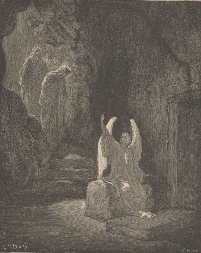 And the angel answered and said unto the women, Fear not ye: for I know that ye seek Jesus, which was crucified. He is not here: for he is risen, as he said. Come, see the place where the Lord lay. And go quickly, and tell his disciples that he is risen from the dead and, behold, he goeth before you into Galilee; there shall ye see him: lo, I have told you.
