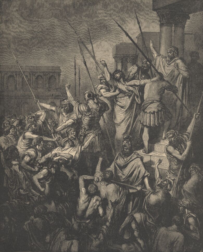 And so Pilate, willing to content the people, released Barabbas unto them, and deliver Jesus, when he had scourged him, to be crucified.—Mark xv, 15.