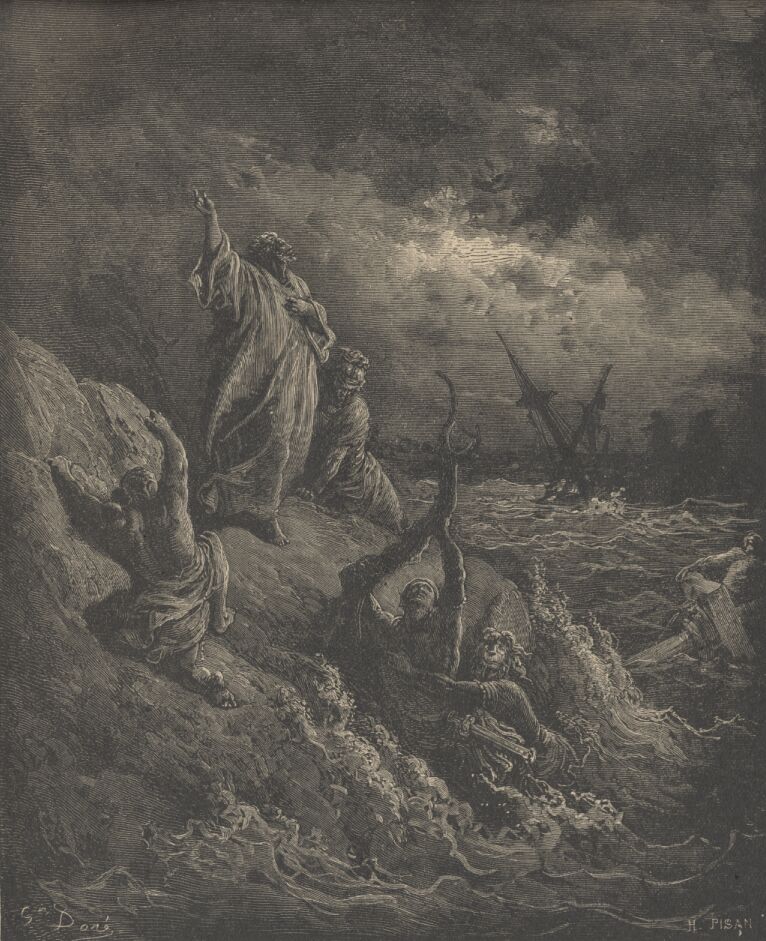 And when they had eaten enough, they lightened the ship, and cast out the wheat into the sea. And when it was day, they knew not the land: but they discovered a certain creek with a shore, into the which they were minded, if it were possible, to thrust in the ship. And when they had taken up the anchors, they committed themselves unto the sea, and loosed the rudder bands, and hoised up the mainsail to the wind, and made toward shore. And falling into a place where two seas met, they ran the ship aground; and the forepart stuck fast, and remained unmovable, but the hinder part was broken with the violence of the waves. And the soldiers' counsel was to kill the prisoners, lest any of them should swim out, and escape. But the centurion, willing to save Paul, kept them from their purpose; and commanded that they which could swim should cast themselves first into the sea, and get to land: and the rest, some on boards, and some on broken pieces of the ship. And so it came to pass, that they escaped all safe to land.
