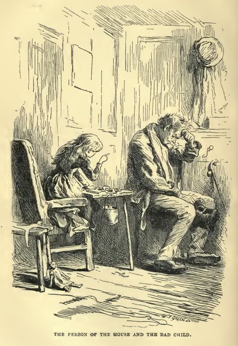 ‘There, there, there!’ said Miss Wren. ‘For goodness’ sake, stop, Giant, or I shall be swallowed up alive, before I know it. And to this minute you haven’t said what you’ve come for.’