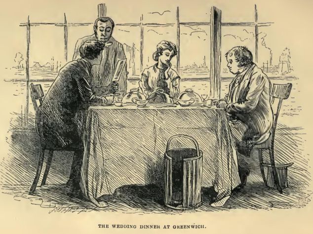 ‘Tormentor!’ returns the dear young creature. ‘You know what I mean, and you trifle with my impatience. Tell me something, immediately, about the married pair. You were at the wedding.’