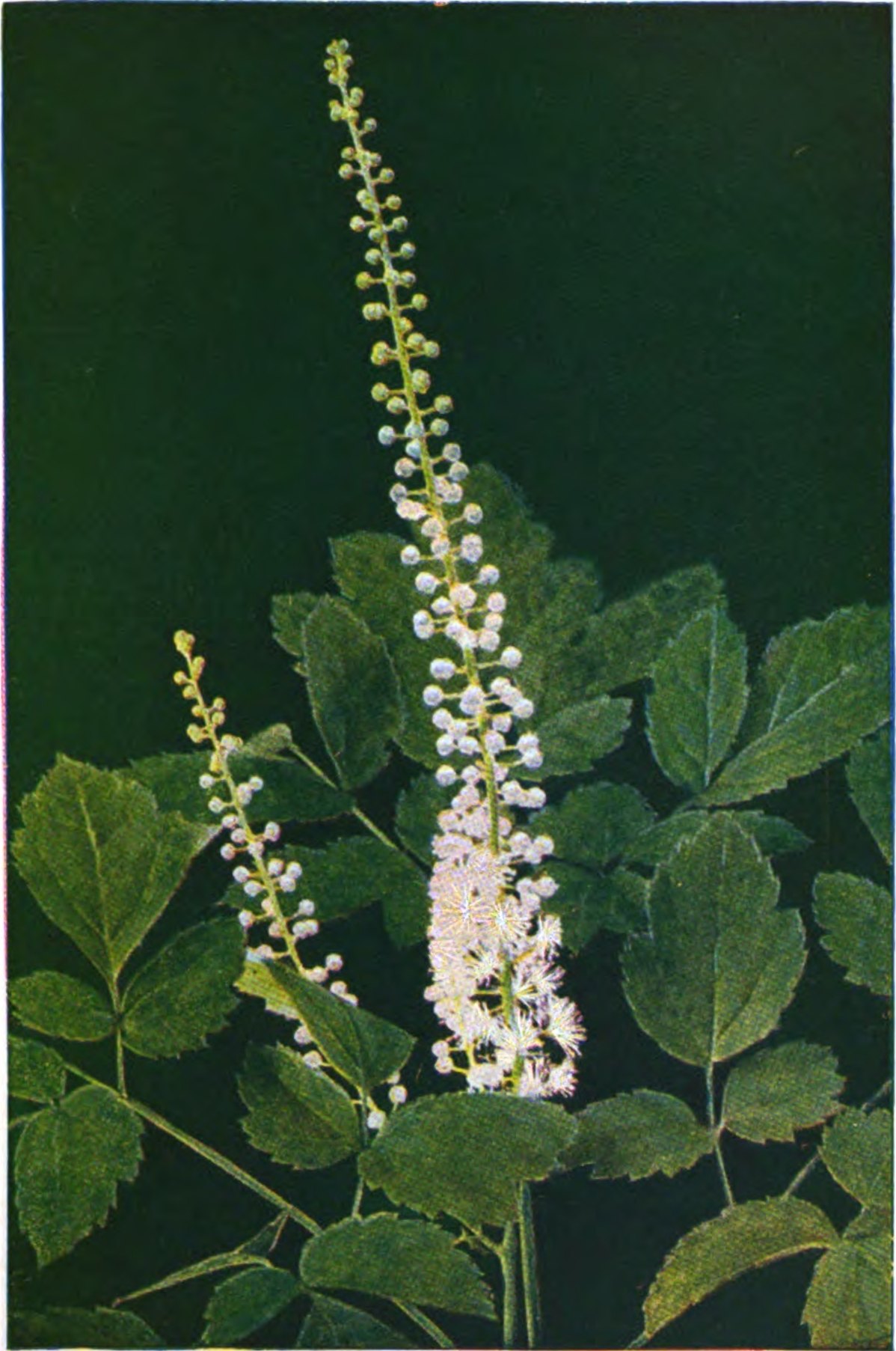 Such are the antidotes for madness prescribed by Burton in his “Anatomie of Melancholy.” But like most medicines, so the homoeopaths have taught us, the plant that heals may also poison; and the coarse, thick rootstock of this hellebore sometimes does deadly work. The shining plaited leaves, put forth so early in the spring they are especially tempting to grazing cattle on that account, are too well known by most animals, however, to be touched by them—precisely the end desired, of course, by the hellebore, nightshade, aconite, cyclamen, Jamestown weed, and a host of others that resort, for protection, to the low trick of mixing poisonous chemicals with their cellular juices. Pliny told how the horses, oxen, and swine of his day were killed by eating the foliage of the black hellebore. But the flies which cross-fertilize this plant seem to be uninjured by its nectar.