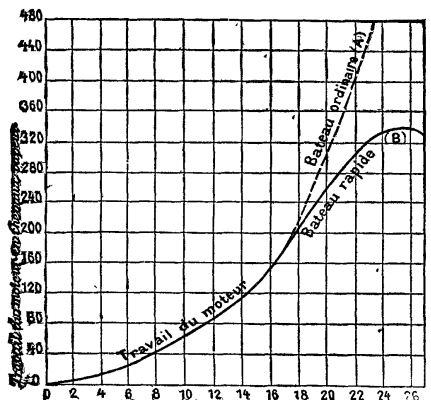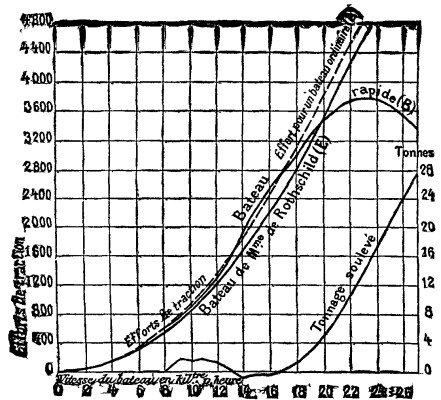 For a given tonnage and identical tractive stresses, the greater or less sharpness of the fore and aft part of the keel allows boats to attain different speeds, the sharper lines corresponding to the highest speeds, but, in practice, considerably diminishing the weight of freight capable of being carried by the boat.