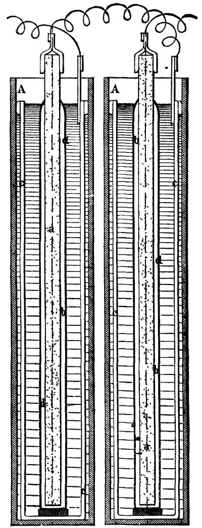 It would seem, therefore, that this slender tree, with a stem which at the ground is only 7 inches in diameter, having a height of 39 feet, and before it has any expanded leaves from whose united surfaces large amounts of water might evaporate, is able to draw from the ground about 4 liters, or seven-eighths of a gallon of fluid every twenty-four hours. That at all events was the amount flowing from this open tap in its water system. Even the topmost branches of the tree had not become, during the fifteen days, abnormally flaccid, so that, apparently, no drainage of fluid from the upper portion of the tree had been taking place. For a fortnight the tree apparently had been drawing, pumping, sucking--I know not what word to use--nearly a gallon of fluid daily from the soil in the neigborhood of its roots. This soil had only an ordinary degree of dampness. It was not wet, still less was there any actually fluid water to be seen. Indeed, usually all the adjacent soil is of a dry kind, for we are on the plateau of a hill 265 feet above the sea, and the level of the local water reservoir into which our wells dip is about 80 feet below the surface. My gardener tells me that the tree has been "bleeding" at about the same rate for fourteen of the fifteen days, the first day the branch becoming only somewhat damp. During the earlier part of that time we had frosts at night, and sunshine, but with extremely cold winds, during the days. At one time the exuding sap gave, I am told by two different observers, icicles a foot long. A much warmer, almost summer, temperature has prevailed during the past three days, and no wind. This morning the temperature of the sap as it escaped was constant at 52° F., while that of the surrounding air was varying considerably.