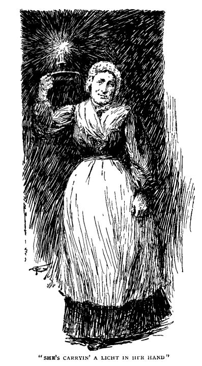"Yon's her step ... an' she's carryin' a licht in her hand; a' see it through the door.