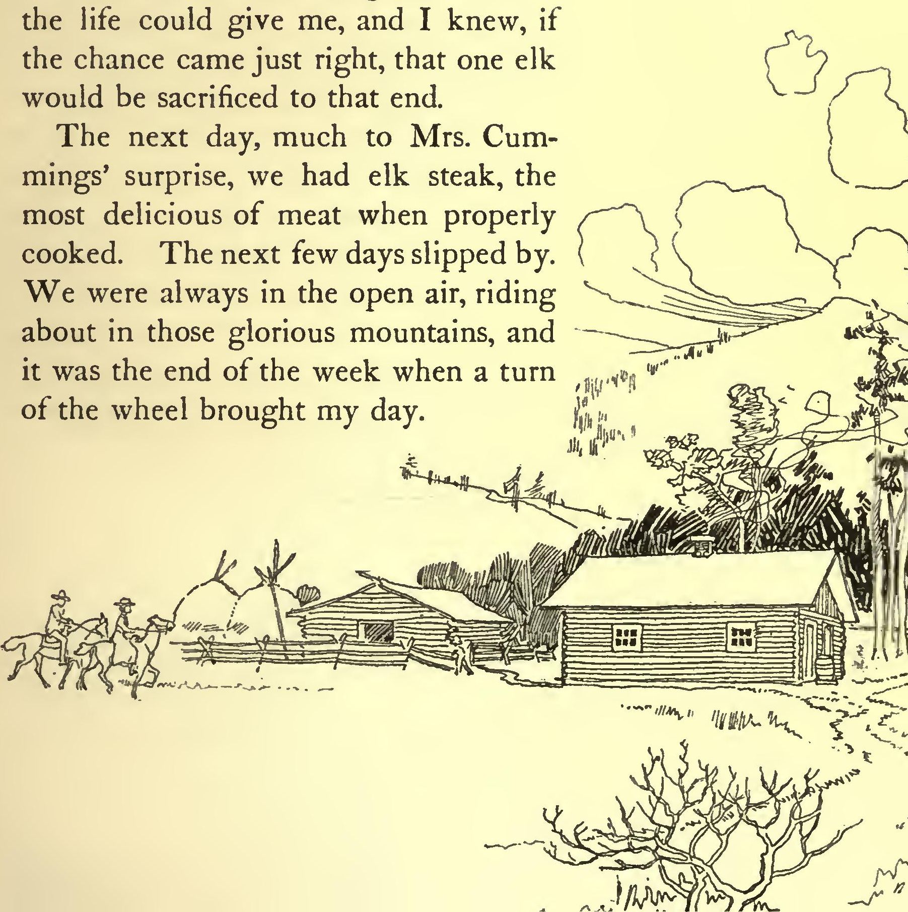 Of course, plenty of women have handled guns and have gone to the Rocky Mountains on hunting trips—but they were not among my friends. However, my imagination was good, and the outfit I got together for my first trip appalled that good man, my husband, while the number of things I had to learn appalled me.