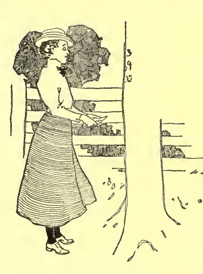 At this point, if any man, a reviewer perhaps, has delved thus far into the mysteries of feminine outfit, he will probably remark, "Why take a hat pin of much value?" to which I reply; "Why not? Can you suggest any more harmless or useful vent for woman's desire to ornament herself? And unless you want her to be that horror of horrors, a strong-minded woman, do you think you can strip her for three months of all her gewgaws and still have her filled with the proper desire to be pleasing in your eyes? No; better let her have the hat pins—and you know they really are useful—and then she will dress up to those hat pins, if it is only with a fresh neck ribbon and a daisy at her belt."