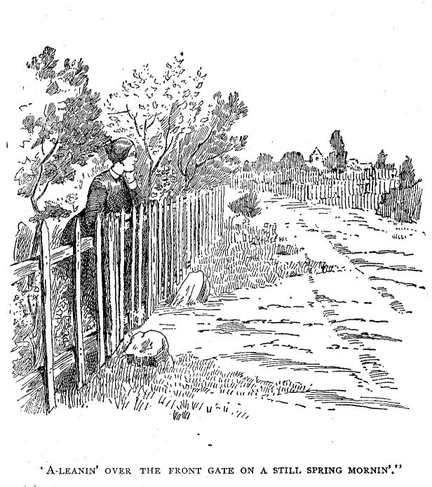I know I did, and I know Submit Tewksbury did, for I stood close to her and heard her. But then to be exactly jest, and not a mite underhanded, I ort mebby to say, that her groan may be caused partly by the fact that that aniversery of hern wuz a-drawin' so near. Yes, the very next day wuz the day jest 20 years ago that Samuel Danker went away from Submit Tewksbury to heathen lands. Yes, the next day wuz the one that she always set the plate on for him—the gilt edged chiny with pink sprigs.