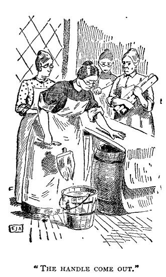 We all wuz as still, almost, as if we wuz automatoes, we wuz so afraid of makin' a speck of noise to disturb him. We kep almost breathless, in our anxiety to keep every mite of noise out of his room. But I did whisper to Rosy in a low still voice—it middlin calm, and Miss Gowdy offered to be the one to carry it back to Jonesville, and change it that very afternoon—for we could not afford to buy a new one, and we had the testimony of as many as twenty-one or two pairs of eyes, that the handle didn't come out by our own carelessness, but by its own inherient weakness—so we spozed he would swap it, we spozed so. But it wuz arrainged before we disbanded (the result of our conference), that the next mornin' we would each one on us bring our offerin's to the fair, and hand 'em in to the treasurer, so's she would know in time what to depend on, and what she had to do with.