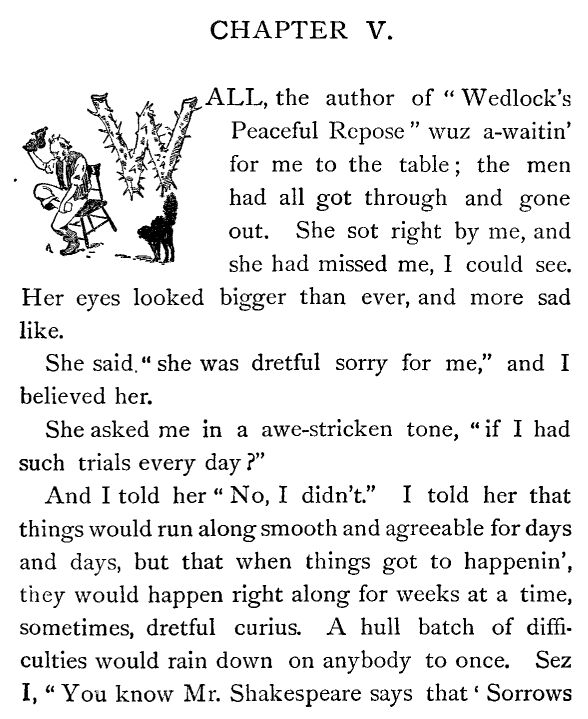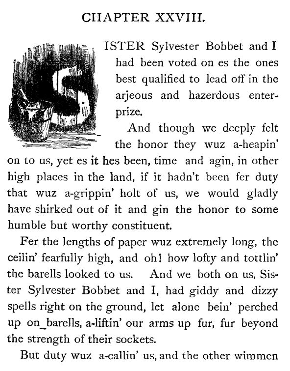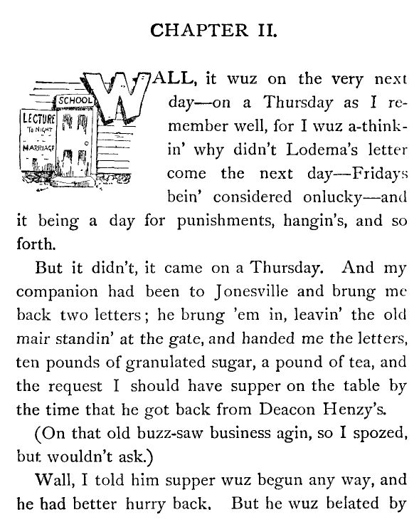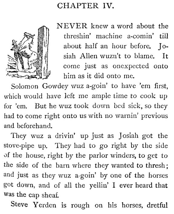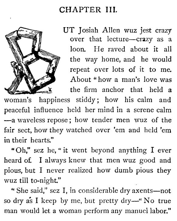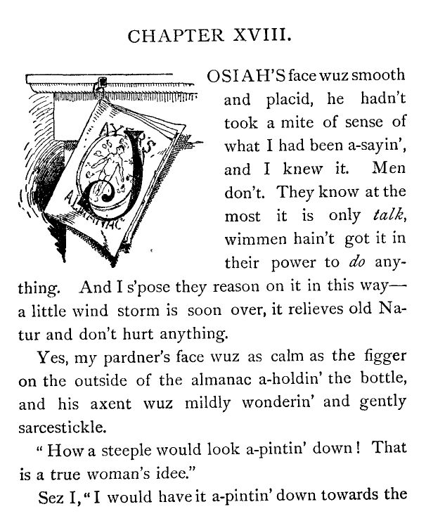 And then again I thought, and it don't seem as if I can be mistaken, I most know that I heerd Josiah Allen mutter in a low voice,