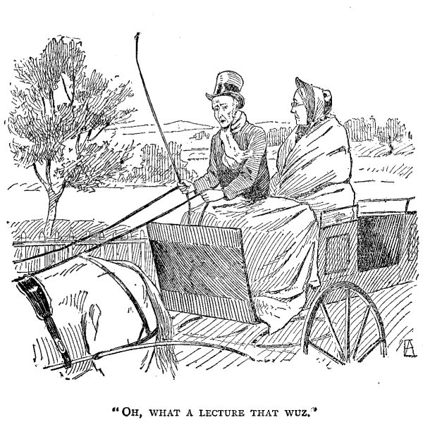 “Wall, I say he wuz right,” sez Josiah. “He knew, and I knew, that wimmen wuzn't strong enough to set.”
