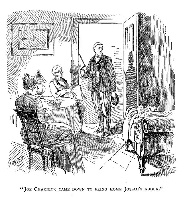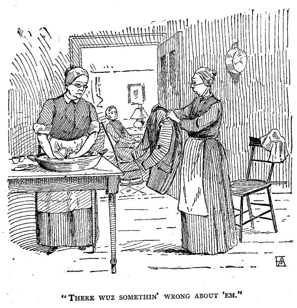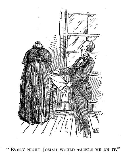 Josiah looked sort o' relieved like, but he sez out, in a kind of a pert way, es he set there a-shellin corn for the hens: