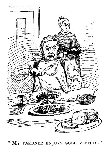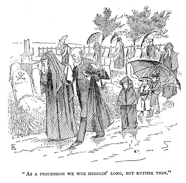 “Anythin' else?” sez he, lookin' sort o' oneasy at me. (That man realizes his shortcomin's, I believe, a good deal of the time, he duz.)