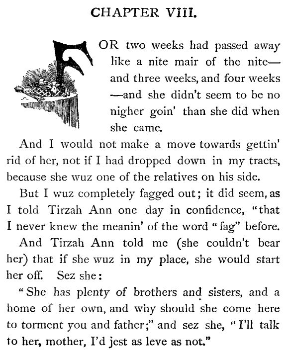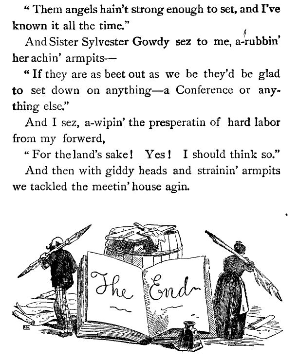 And then he shet the door quick, before I could say a word. But good land! I didn't care. I knew I could say what I wanted to with my faithful pen—and I am bound to say it.