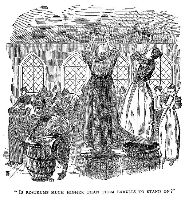 “And while wimmen have done all this work for the Meetin' House, the Meetin' House ort to be honorable and do well by her.”