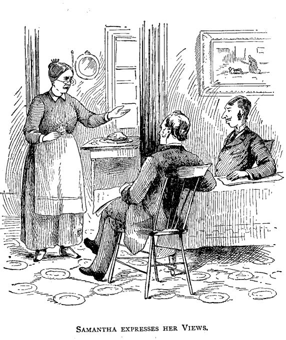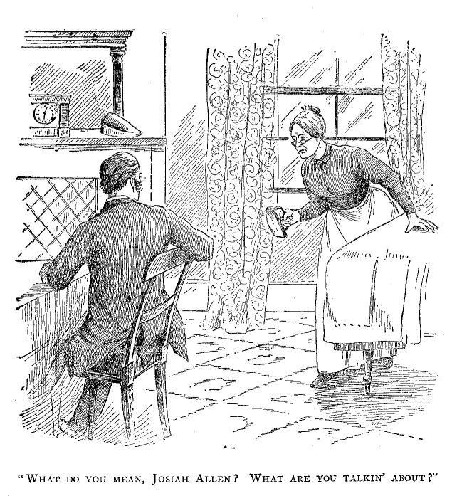 “Josiah Allen, what time will you get when you are fairly started on your buzz saw, for domestic life, or social, or for religious duties?”