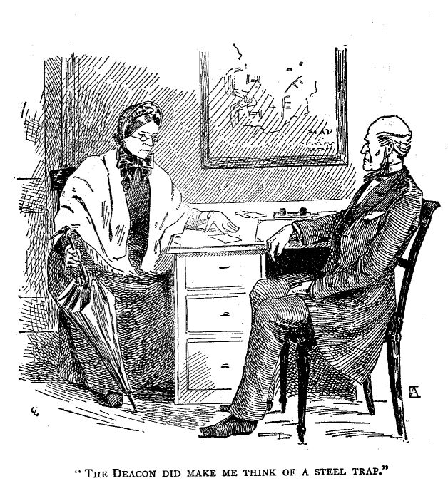 And it wuz kinder curious to meditate on it, that they wuz all deacons, every one on 'em. Three on 'em wuz Baptis'es, and two on 'em had jined our meetin' house, deacons, and the old name clung to 'em—we spoze because they wuz such good, stiddy men, and looked up to.