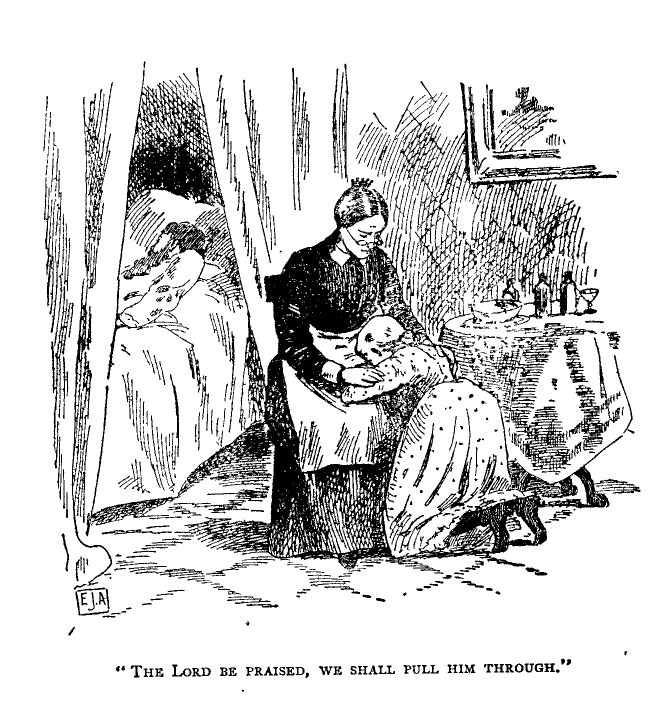 “I have got this to say, Josiah Allen. The Meetin' House hain't a-actin' right about wimmen. The Founder of the Church wuz born of woman. It wuz on a woman's heart that His head wuz pillowed first and last. While others slept she watched over His baby slumbers and His last sleep. A woman wuz His last thought and care. Before dawn she wuz at the door of the tomb, lookin' for His comin'. So she has stood ever sense—waitin', watchin', hopin', workin' for the comin' of Christ. Workin', waitin' for His comin' into the hearts of tempted wimmen and tempted men—fallen men and fallen wimmen—workin', waitin', toilin', nursin' the baby good in the hearts of a sinful world—weepin' pale-faced over its crucefixion—lookin' for its reserection. Oh how she has worked all through the ages!”
